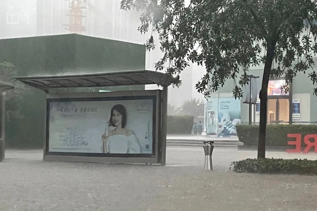 下午3点多,我从医院里看窗外,那时候感觉雨不是特别大,地面没有特别多积水,不过也有可能因为医院地势比较高。从医院出来后就发现,雨比想象中大太多,车子开了几分钟开不动了,想着开到一个地势高的地方把车子停下来,但是没想到越开越低,水位越来越高,后来车门都开始渗水了,我媳妇就觉得这情况非常不乐观,让我们赶紧下车。