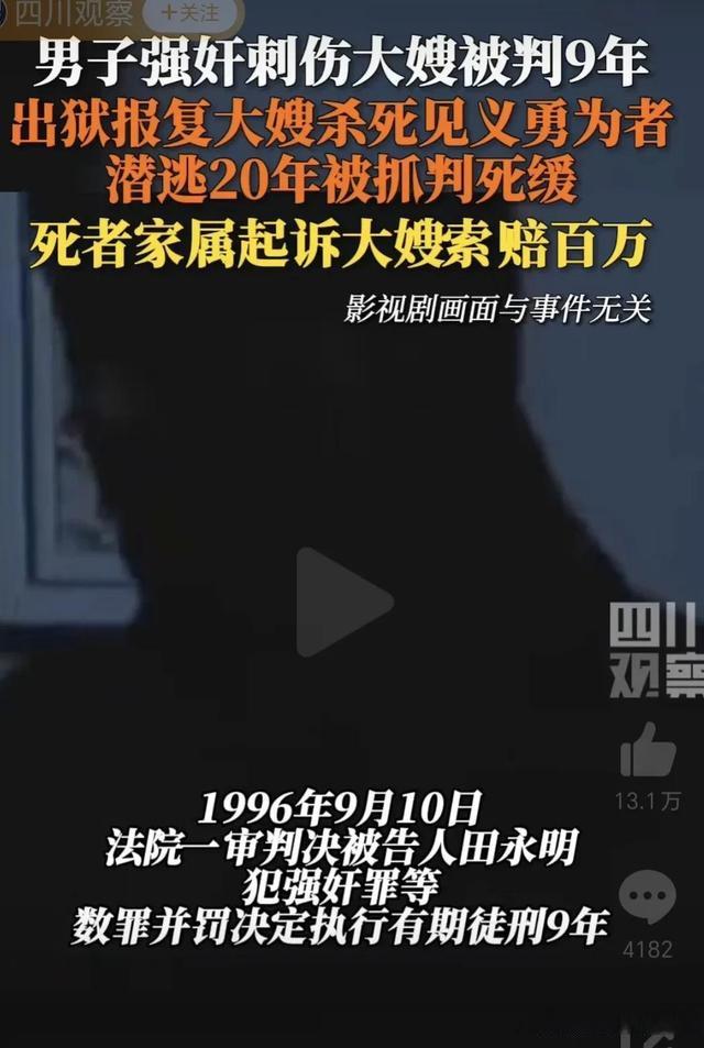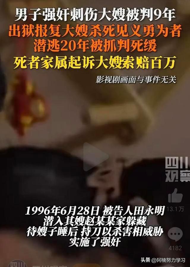 这是发生的真实案例,被告人田某在1996年6月偷偷潜入赵某的家中躲藏起来,赵某是田某的亲嫂子,田某是赵某的小叔子,可是田某趁着自己的嫂子睡着后,贪恋她的美色,趁着夜晚拿出刀威胁强奸了嫂子!