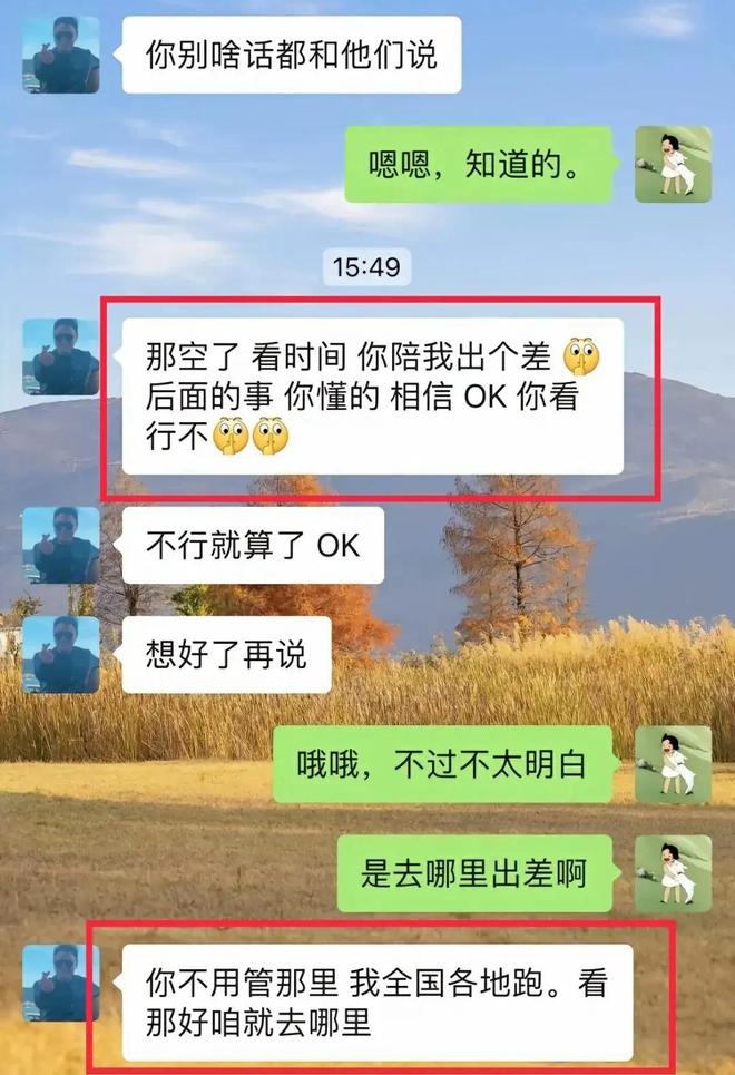 该女子称,她在江苏南通某处上班,而公司领导则位于江苏无锡,但领导却多次要求跟他‘单独出差’,而且称全国各地到处跑,看好哪里都可以。