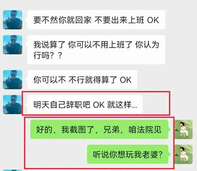 只可惜,该女子根本不吃这一套,当即就拒绝了这位领导的“特殊要求”,而这位领导在遭到拒绝后,也十分生气当即发消息说“要不你就待在家里,别出来上班。”