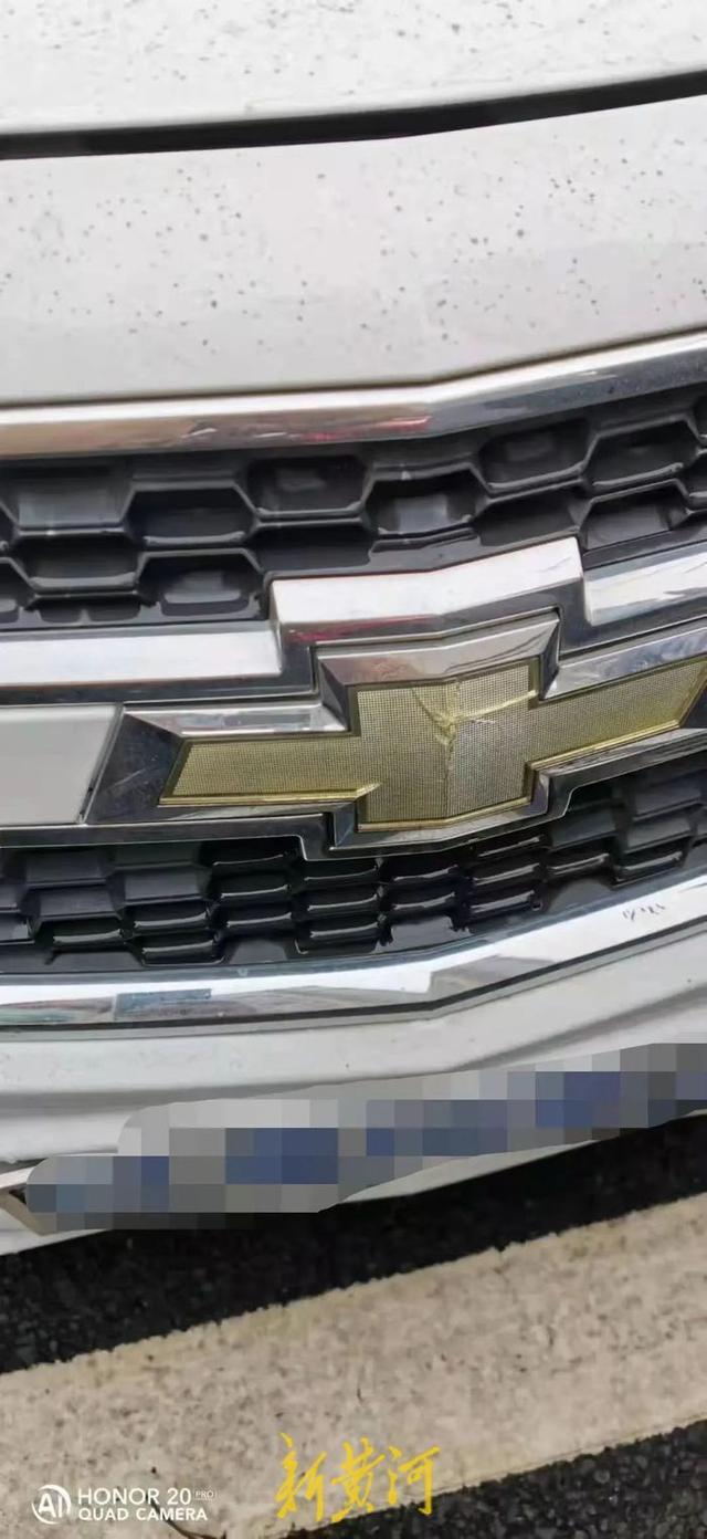 张某撞击妻子的车辆,车标出现裂纹