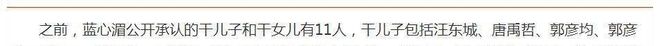 干儿干女多了,蓝心湄自然就传出了绯闻,尤其是与干儿子们,各种绯闻不断。干儿子谢和弦出事后,蓝心湄真情告白道:肩膀永远给他靠。
