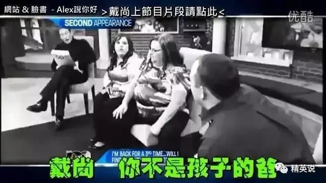 不过主页菌在看这档节目的时候,偶尔还是能从各种撕逼和干架里找到一丝丝人性的温情,比如下图中这个叫丹妮丝的姑娘,花了两年时间,前后上了三次节目才终于找到孩子的爹。