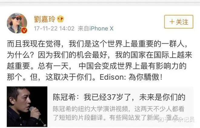 刘嘉玲不理解,“我想为什么要删我的微博啊,现在不是一个自由民主的体系吗?我就是站在那里拍了几张照片,我做错什么了吗?后来我决定不删,因为我只是表达了这么多年来的一个情结。”她说,“我觉得我没有错。”
