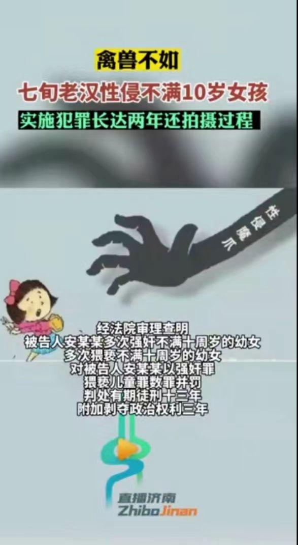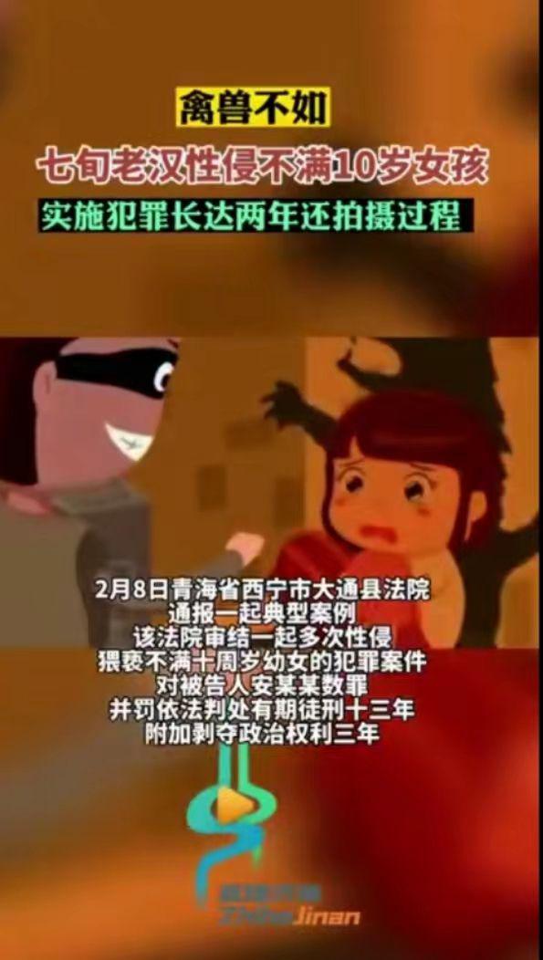 “真不是人啊!禽兽不如啊!”2023年2月8日,青海省西宁市大通县法院通报了一起典型案例——七旬老汉多次诱奸邻居不满10周岁的幼女,还用手机拍摄过程,其行为令人发指。