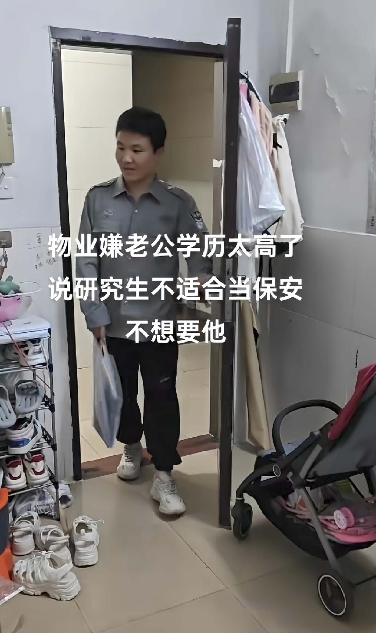 坐标广东,一女子爆料老公是个研究生,但是因为失业后找不到合适的工作选择去小区当保安了。
