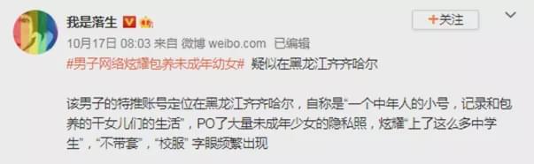 男子网络炫耀包养未成年幼女 内容…