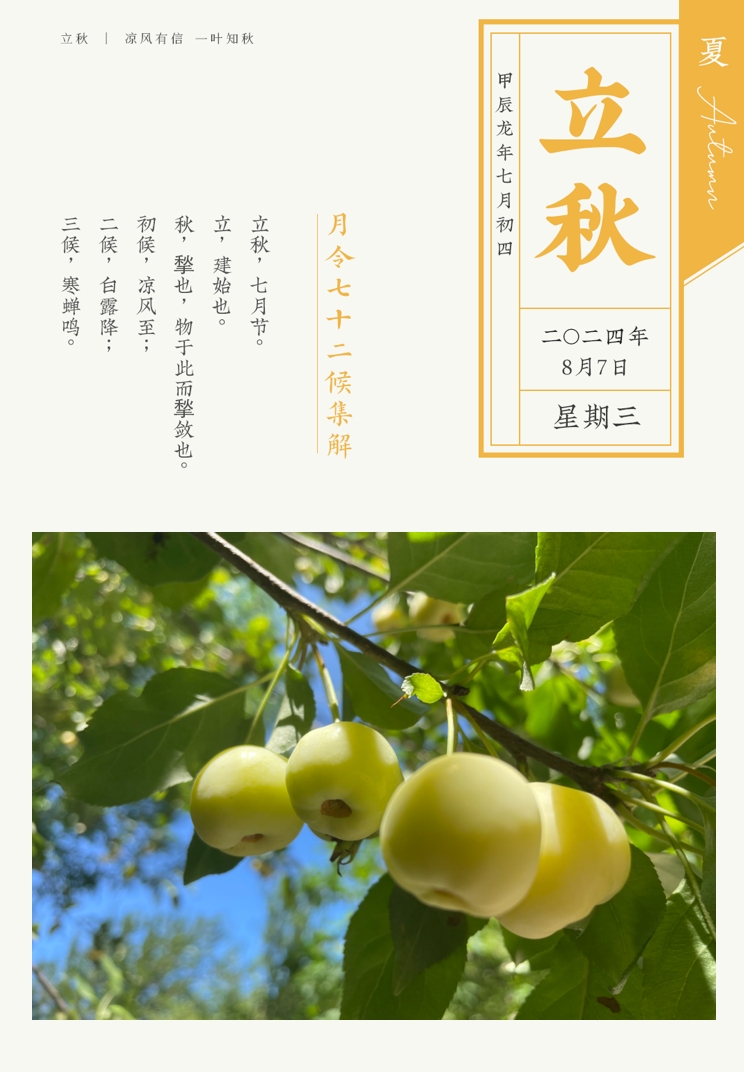 立秋,二十四节气中的第13个节气,也是秋…