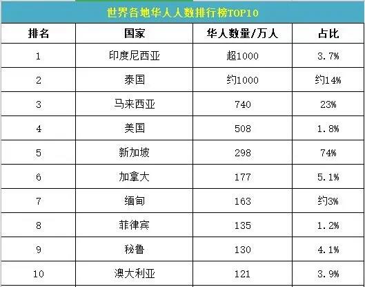 海外到底有多少华人?全球华人最多的十个国家!